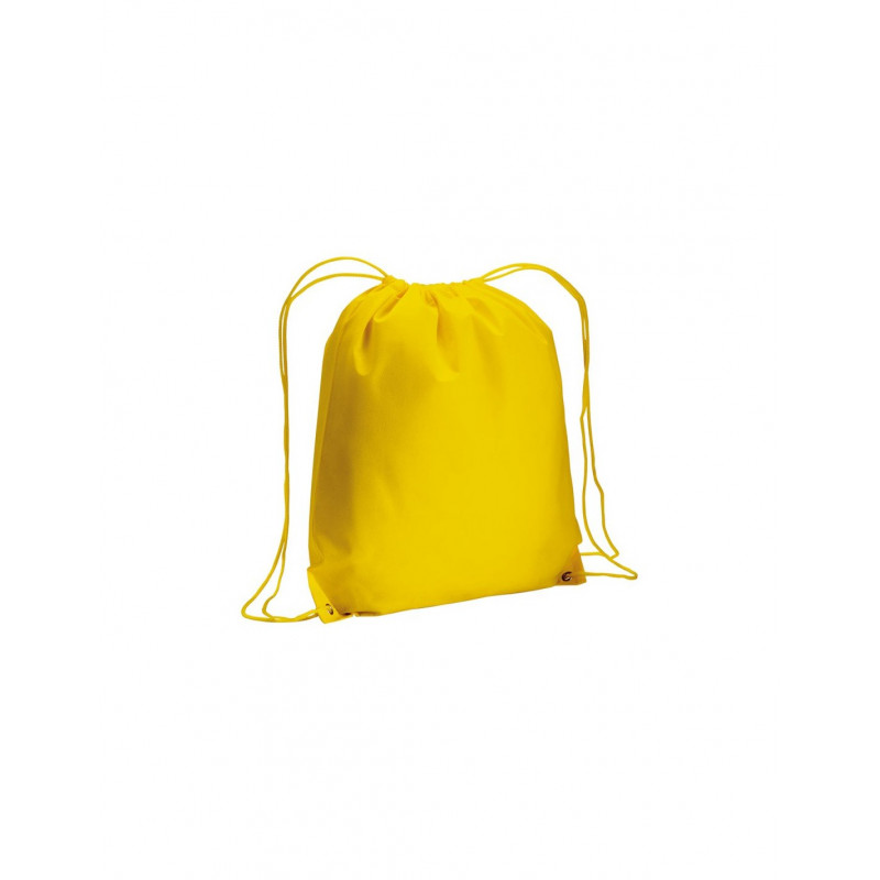 Sacca zaino in TNT con lacci per tracolla, chiusura a strozzo e angoli rinforzati.